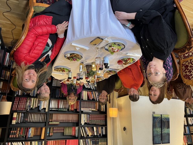 Lunch at Pilegrimsgården during the April Living Lab. From left Rita Moseng Sivertsvik, Living Lab co-lead from Ruralis, Maja Farstad, PhD and researcher at Ruralis, participants Sissel Langørgen, Jenny K. Domås, Kari Øye, Torunn Bjerkem, and Living Lab co-lead Mai Løvaas from Oi! Trøndersk Mat og Drikke. Photo: Pilegrimsgården in Trondheim