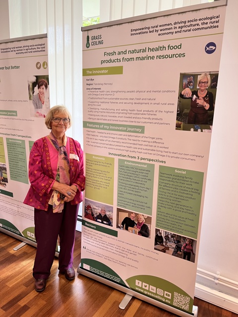 Øye has created the company Havfruene, producing Omega 3-rich cod liver oil made from locally sourced ingredients. They have a stand at the annual food festival in Trondheim: Trøndersk Matfestival, and Øye attended the Grass Ceiling-showcase i Brussel, where she presented her business to the rural women innovators and project partners of the other countries, as well as representatives from the European Commission.