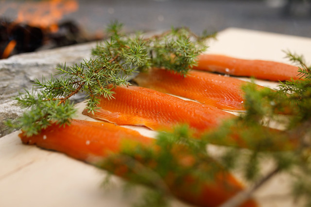 Det er kaldt i Snåsa, og godt med snø. Det sørsamiske museet og kultursenteret på Horjemstangen ved Snåsavatnet fikk ny kokk da de åpnet i fjor. Her lager Kim Tomas Joma mat basert på sørsamiske mattradisjoner med lokale råvarer fra Snåsa. I slutten av november var kokk Heidi Bjerkan fra Credo oppe på Saemien Sijte og hjalp til med gourmetaftenen Joma laget til under Meirsmak-festivalen i Snåsa. Under Trøndersk Matfestival Et Sted Nær Deg dekket Joma opp til langbord i storlavvoen med blant annet kraft kokt på reinsdyrskank med røkt reinsdyrhjerte, og bugnende fat med grønt, spekemat og ost laget av dyktige lokalmatprodusenter i Snåsa.