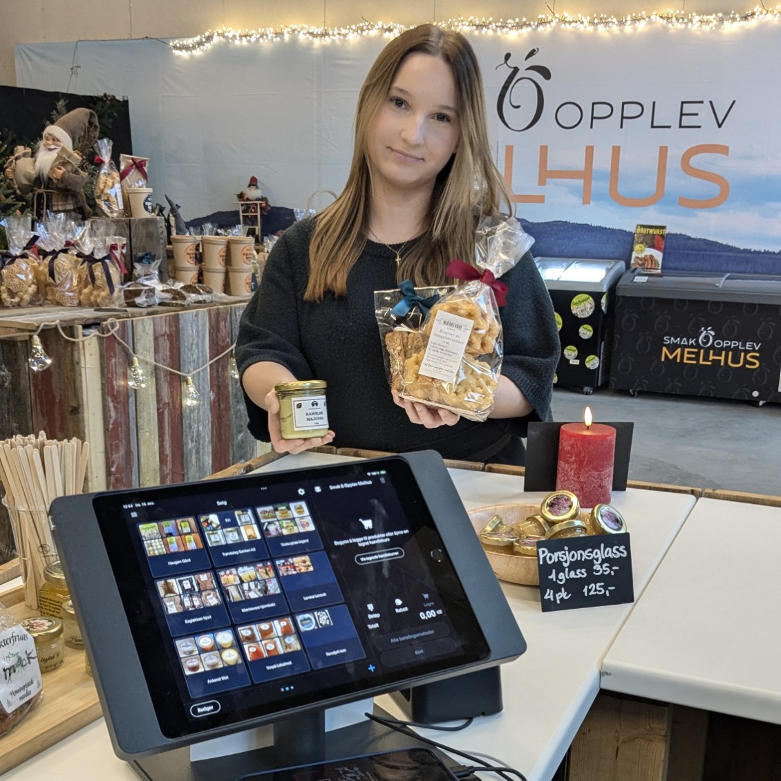 Elever fra Salg og reiseliv på Melhus Videregående skole driver sin egen pop-up-julebutikk på Melhustorget, hvor de selger lokalmat av produsenter fra Smak og Opplev Melhus.