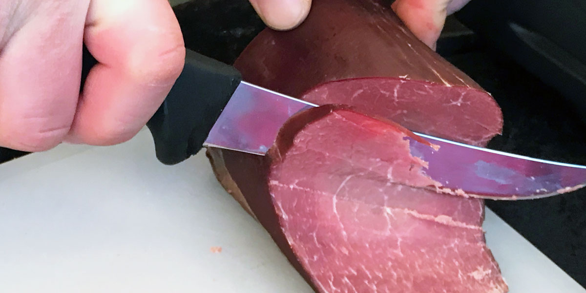 Badsturøkt lårtunge av elg. Foto: Camilla Næss