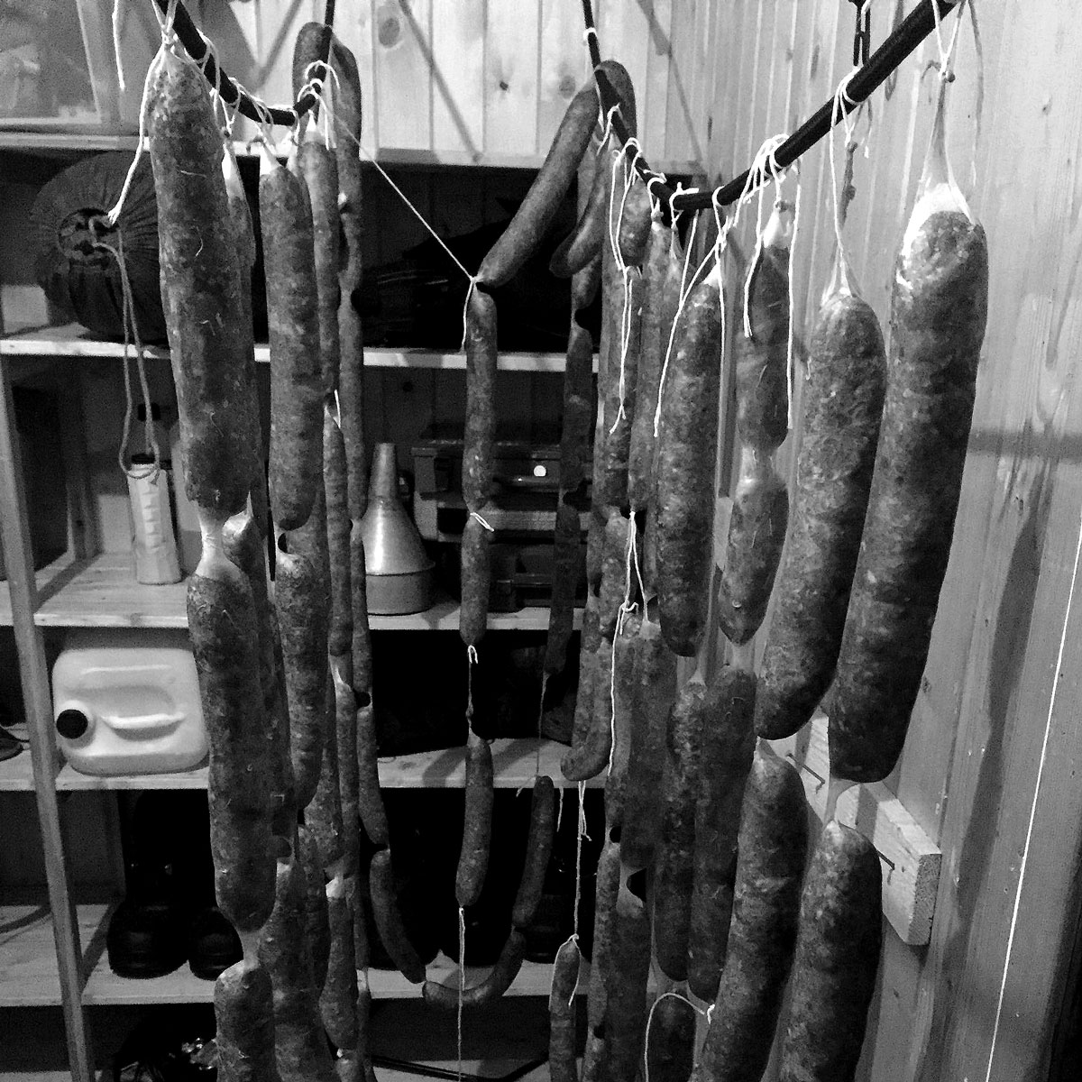 – Ifølge oppskriften skal elgpølsa krydres med brennevin av egen avl. Akkurat det har vi gått bort fra, men ellers er oppskriften den samme som den har vært i generasjoner.