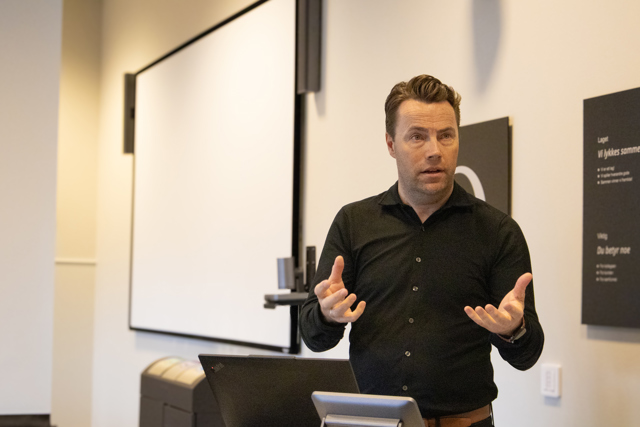 Asgeir Johansen, markedssjef ASKO Servering Midt-Norge, fortalte om deres innkjøpsordning og hvordan lokalprodusentene unngår å forsvinne i den store mengden av produkter.