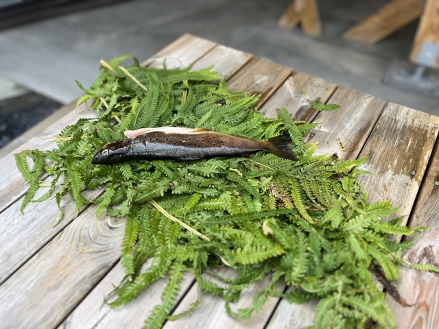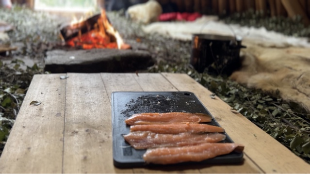Fisk pakket i bregner og ørretfilet spikret på planke ved bålet. Bli med prosjektet SYSTER Gastronomi når sørsamisk matkultur formidles gjennom de åtte årstidene i reindriftsåret