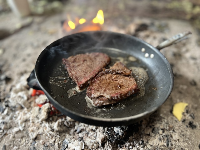 Fileterte ørretfilet klar til å varmebehandles på ildstedet
