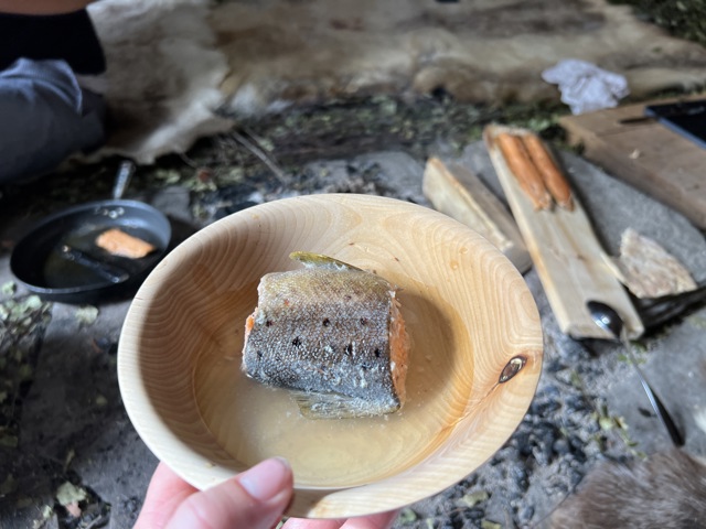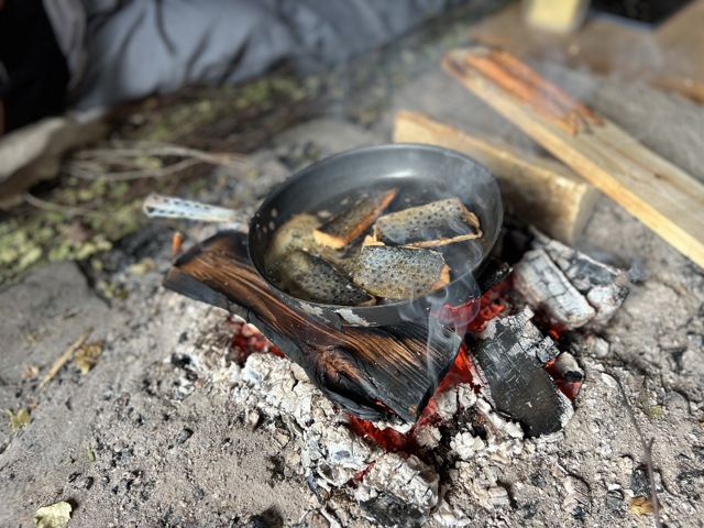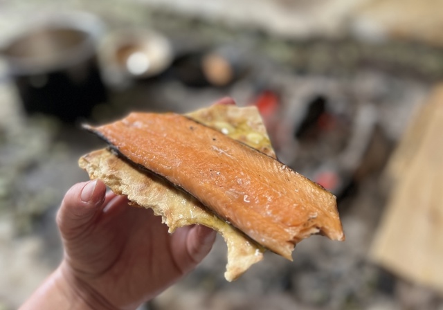 Ørretfilet, rett fra planken ved bålet og opp på varmt laejpieh-brød