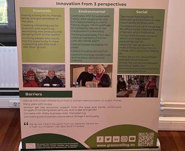 Sammen med Living Lab co-lead Mai Løvaas fra Oi! Trøndersk Mat og Drikke presenterte Kari Øye fra Havfruenes tran sin bedrift og gründerreise til EU-prosjektet Grass Ceiling.
