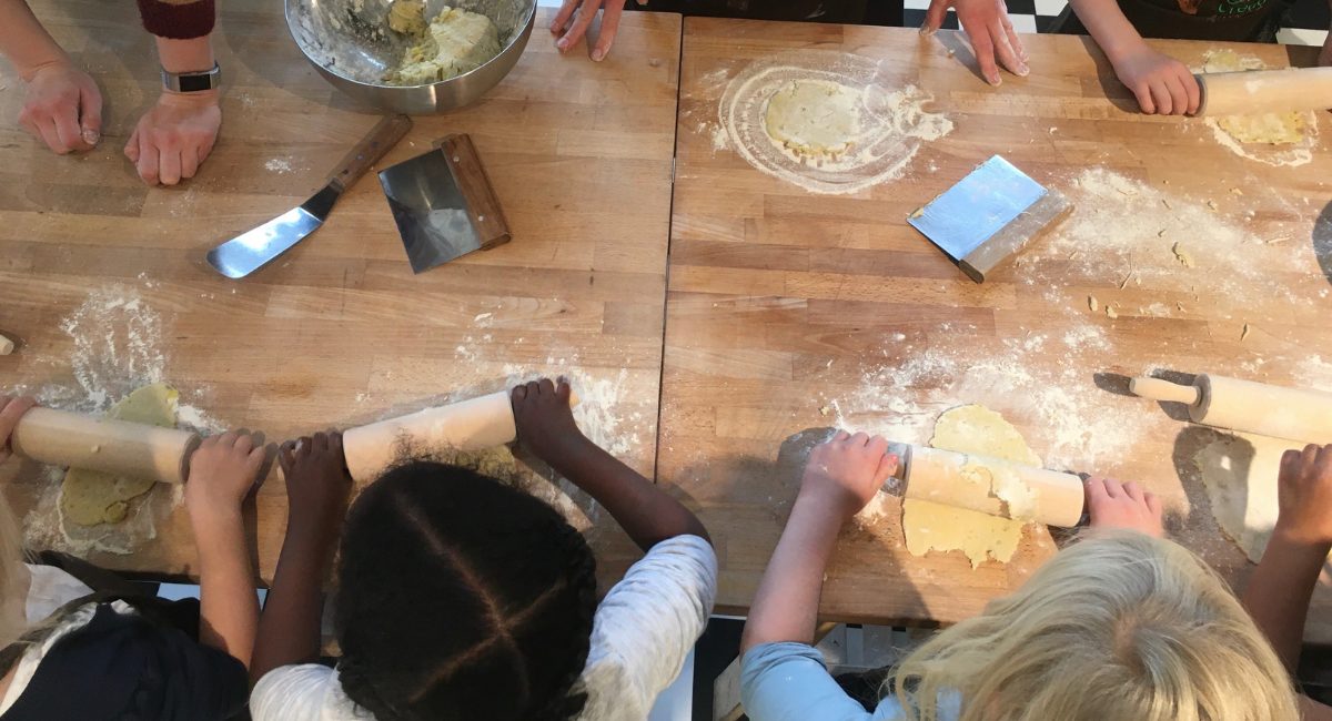 Under ØkoUka fikk barn lage sine egne potetlomper med mandelpotet fra Kvikne. Foto: Mai Løvaas