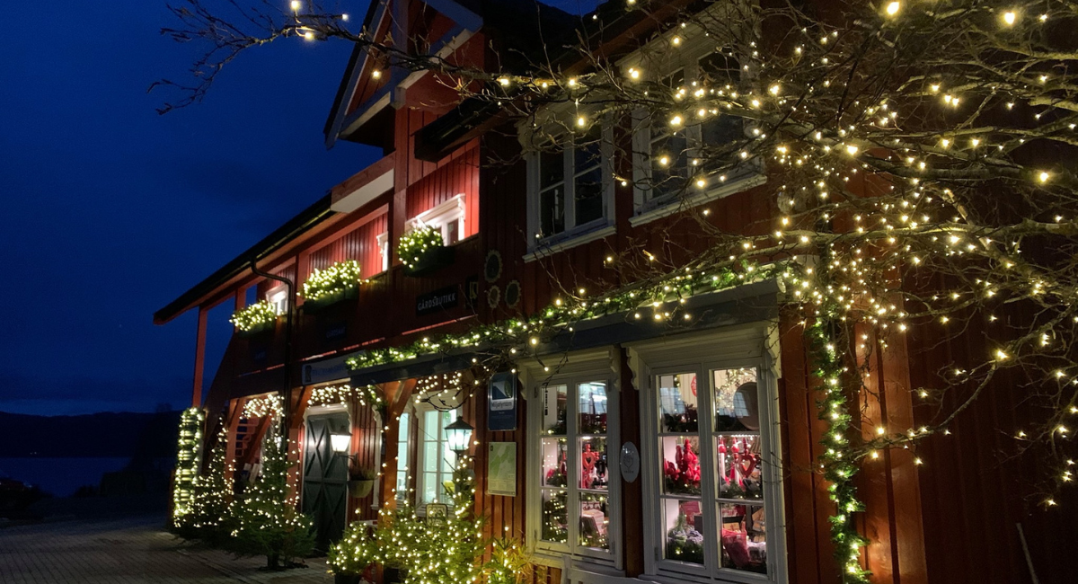 På Berg gård i Inderøy har de pyntet til jul og i sitt gårdsutsalg har de både lokalmat- og drikke og andre spennende ting man kan gi i julegave.