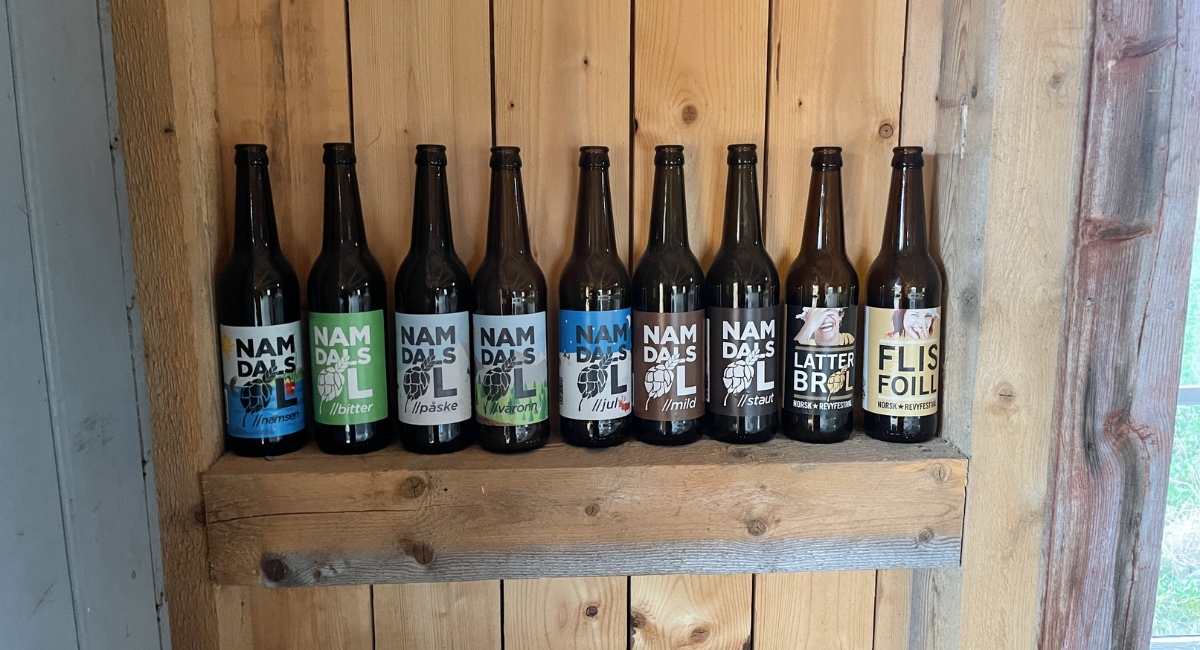 Namdalsbryggeriet byr på mange spennende øltyper. Foto: Mai LøvaasSiden helsekosten på Grong er nedlagt tilbyr hun også et lite sortiment av nøtter, tørket frukt, kokos chiafrø og andre varer, mest bakerelatert. De ville gjerne ha dyr på gården, så de har elvegris som bor i skogen langs Namsen. Herfra kommer skinke og salami som er til salgs i gårdsutsalget. Om sommeren leier de ut lakseval, og tilbyr båtfiske, landfiske og overnatting langs Namsen, en verdensberømt lakseelv. Her kan man overnatte i gangavstand til elva, ta en kaffepause i den store gapahuken ved elvebredden, eller nyte varmen i den vedfyrte badstua rett ved Namsen. Til kvelds kan man få servert steinovnsbakt pizza fra bakehuset. Bakehuset har langbord og kjøkkenbenker, og her holder Jenny på Jørem bakekurs.