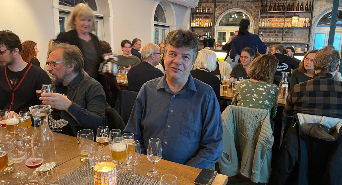 Knut Albert Solem på boklansering og ølsmaking på E.C. Dahls Bryggeri 21.oktober.