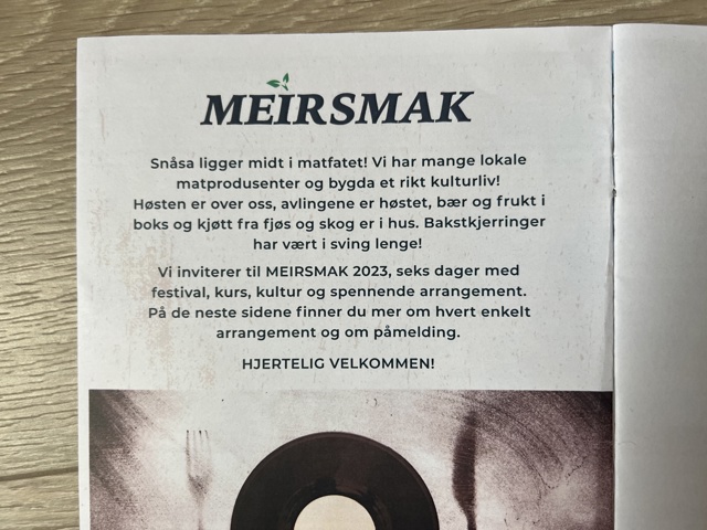 Denne uka går Meirsmak-festivalen av stabelen i Snåsa, med lokalmatmarked, gourmetaftener, matkurs, konsert, liv og kultur.