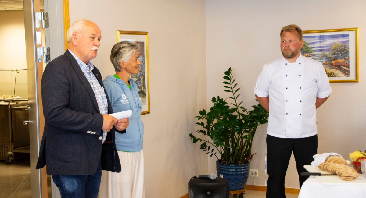 Landbruksdirektør Tore Bjørkli, Daglig leder Aslaug Rustad og kjøkkensjef Bjørn Erik Vangen på Leksvik Helsetun under Trøndersk Matfestival - et sted nær deg