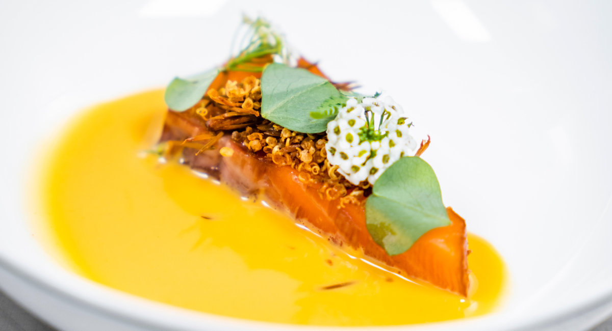 From Ox in Reykjavik, Iceland, Thrainn Freyr Vigfússon served delectable hot smoked salmon, fermented spruce and wood sorrel.