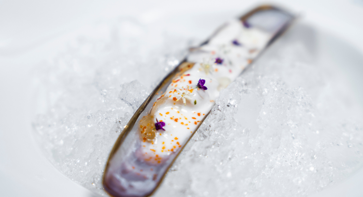 Renaa started off the eleven course Nordic Chef Taste Dinner with these exact razor shells, elegantly laid atop a bowl of crushed ice and decorated with fresh elder flowers.