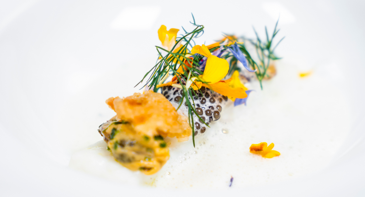 Christopher Davidsen of Speilsalen followed up with caviar, yeast and sour cream. It was in the shape of a small croissant, with the caviar decorated like pearls on top.