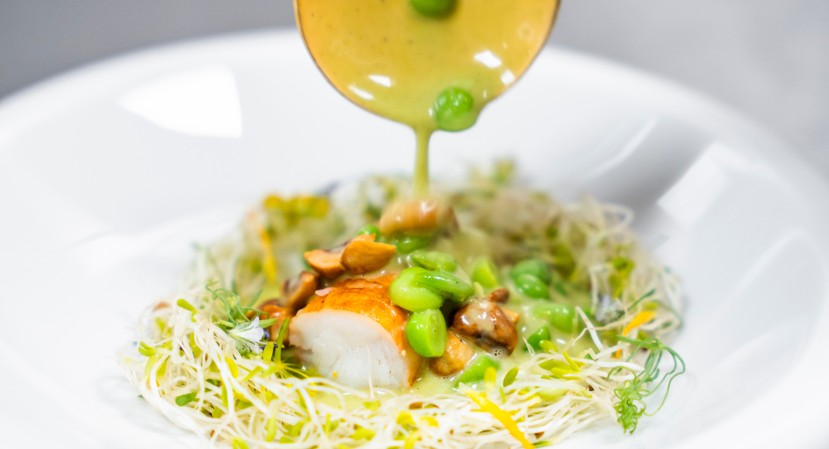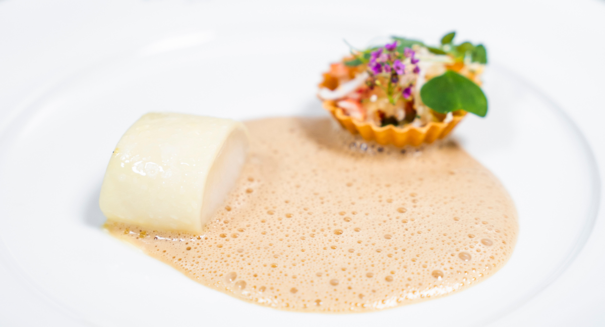 Tender halibut with a tartelette with local herbs, lemon scallop sauce, tarragon aioli and a sauce made from fish bone and crab shells made by Viktor Örn Andrésson of LUX Veitingar in Reykjavik, Iceland, completed the seafood tasting experience on a high note.