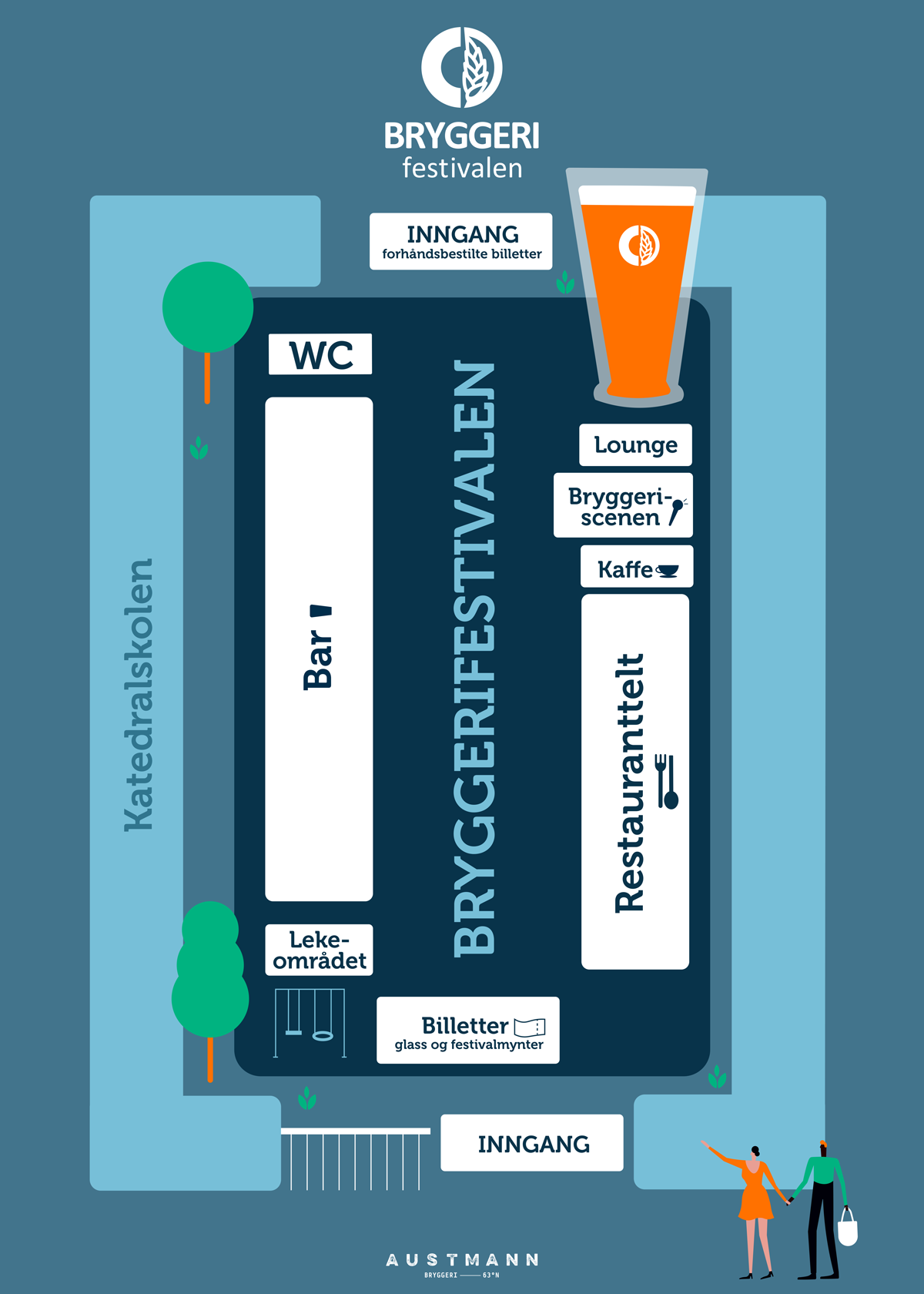 Bryggerifestivalen arrangeres i skolegården til Trondheim Katedralskole. Inngang fra Bispegata, og i tillegg fra Erling Skakkesgate for deg som har forhåndskjøpt Bryggeripakken. Bryggerifestivalen er gratis og åpen for alle, og selve ølsalget foregår ved at publikum kjøper et smaksglass og festivalmynter (Oi!-er) ved inngangen. Glasset rommer en desiliter, og en smak koster 1 Oi!.