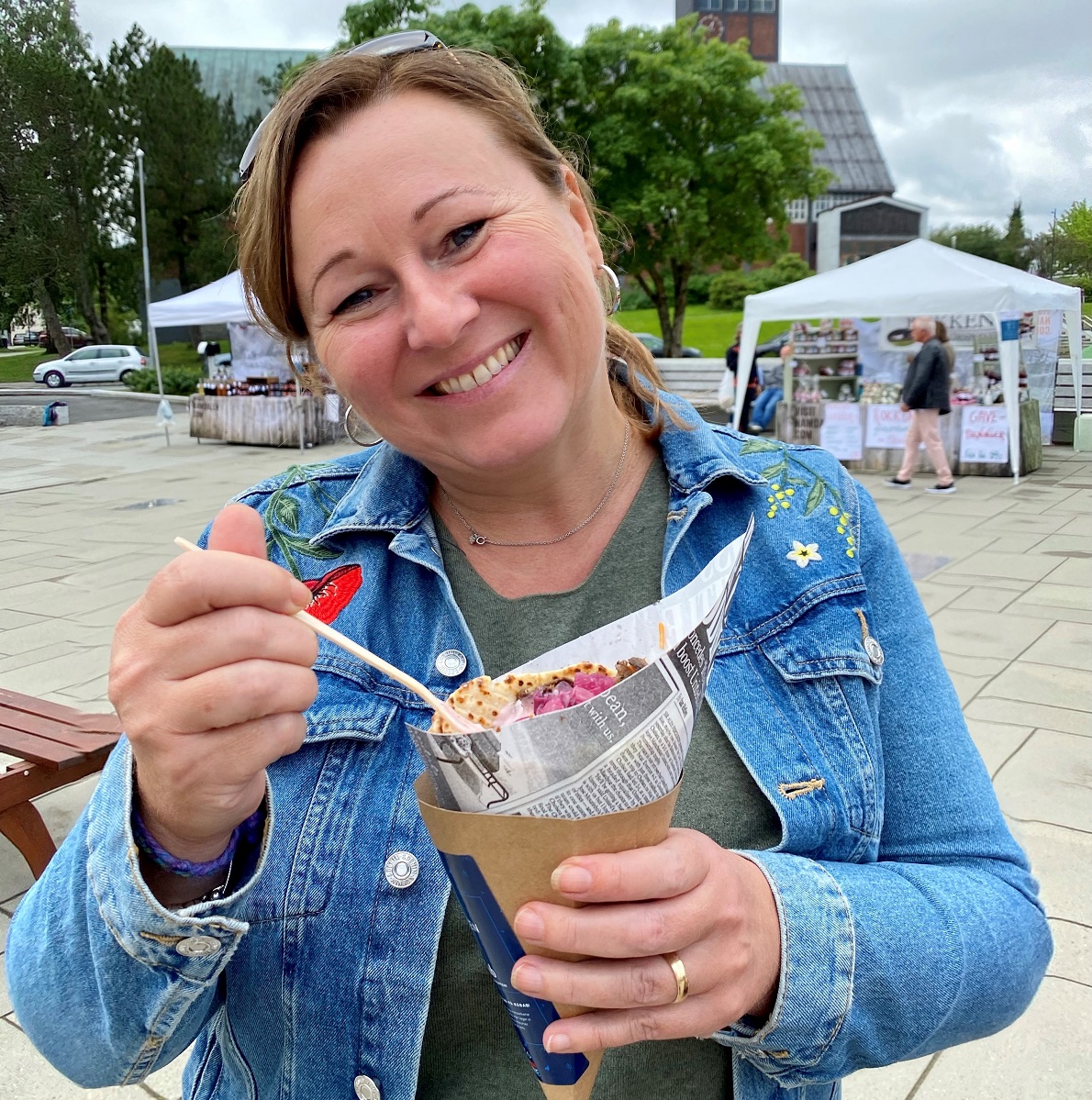 Daglig leder Petra Sestak i Trøndelag Reiseliv nyter en "Libab" i Namsos under årets Trøndersk Matfestival - et sted nær deg! FOTO: Silje Kolaas.