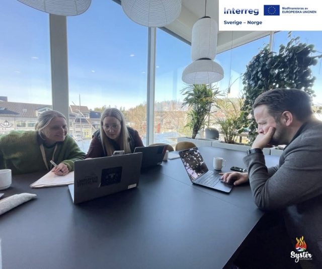Prosjektgruppen jobber fram løsninger for skolemat i Åfjord. Fra venstre: Ingrid Langklopp, Ann Sparrock og Stian Nilsen. Foto. Rikard Backskog/Torsta Landsbygdsutveckling