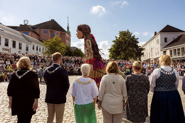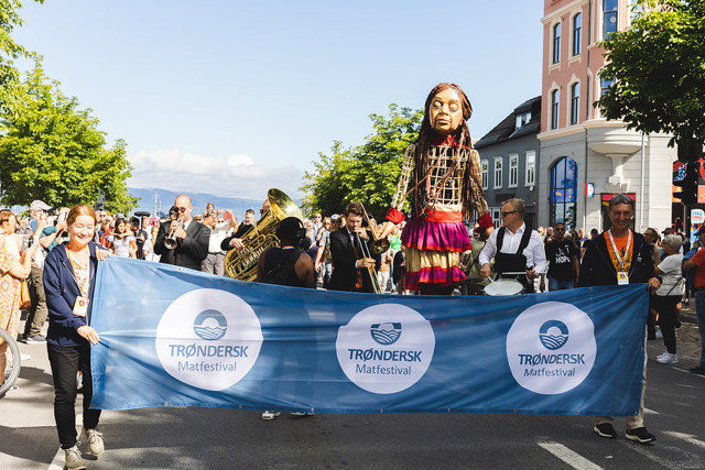 I år åpnet vi Trøndersk Matfestival samme dag som Olavsfest avsluttet, og samarbeidet ble markert gjennom et besøk fra Little Amal under åpningsseremonien. Little Amal er en dukke på tre og en halv meter av ei syrisk flyktningjente som har reist over hele verden og blitt et internasjonalt symbol på menneskerettigheter.