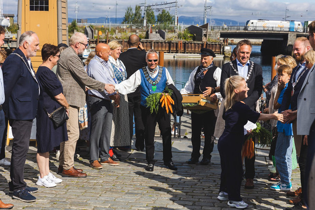 Roerne fra Frosta, Little Amal, festivalledelsen, Rita Ottervik, Tore O. Sandvik og alle oppmøtte trønderske Ordførere kunne deretter lede folkeparaden opp mot Stiftsgården hvor den offisielle åpningen av matfestivalen fortsatte.