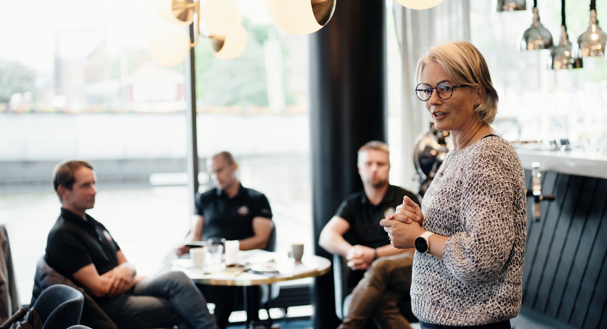 På Broen Bar på Scandic Nidelven har rundt 20 kunder fra storkjøkkenbransjen samlet seg. De skal smake på produktene som er utviklet i Kraft-samarbeidet, et innovasjonsløp for å gjøre små og mellomstore kjøttforedlere mer leveringsdyktig til storkjøkken. Åslaug Hennissen, prosjektleder fra Oi! Trøndersk Mat og Drikke, understreker at denne runden er en del av prosessen i å utvikle fullverdige produkter.