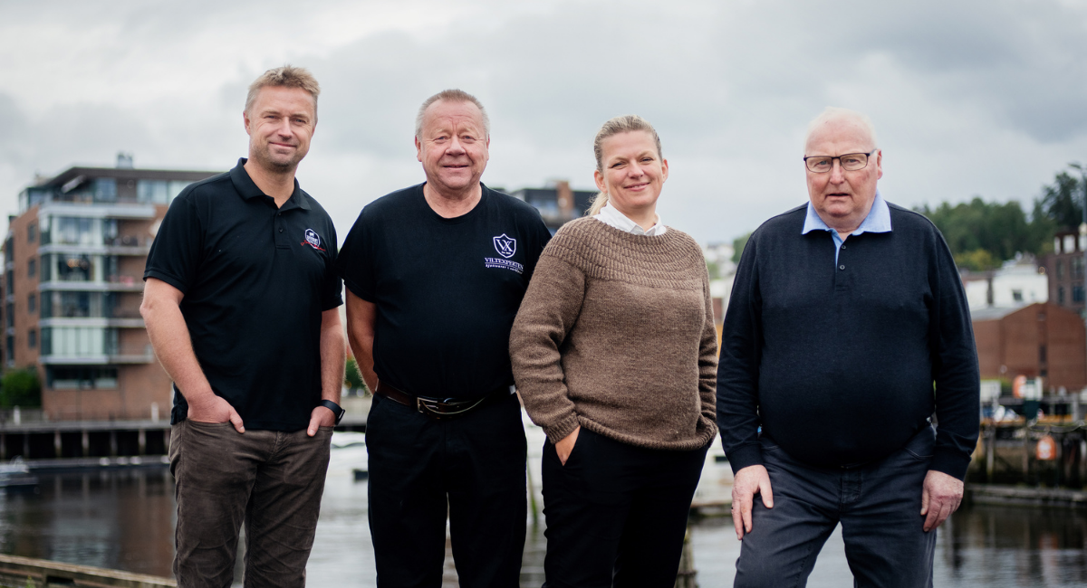 Fra venstre: Daglig leder Håvard Gausen ved Inderøy Slakteri, Daglig leder Harry Dyrstad ved Vilteksperten, prosjektleder Åslaug Hennissen fra Oi! Trøndersk Mat og Drikke og gründer Per Johan Pedersen fra Meråker Kjøtt. Foto: Ole Ekker