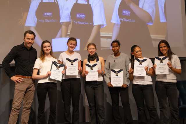 - Særlig ett kjøkken utmerket seg når det gjaldt råvarekunnskap. - Vi så etter om elevene hadde innsikt i opprinnelse og utnyttelse av råvarenes egenskap. Gjengen som fikk denne prisen imponerte dommerne med kusnnkaper om hvor dypt sjøkrepsen lever, de hadde søkt opp opprinnelsen til Nemesis-kaken og har pugget råvarer i pausene sine. De var overlegne vinnerne og dommerne gikk derifra med ny kunnskap, og vi takker elevene for dette!