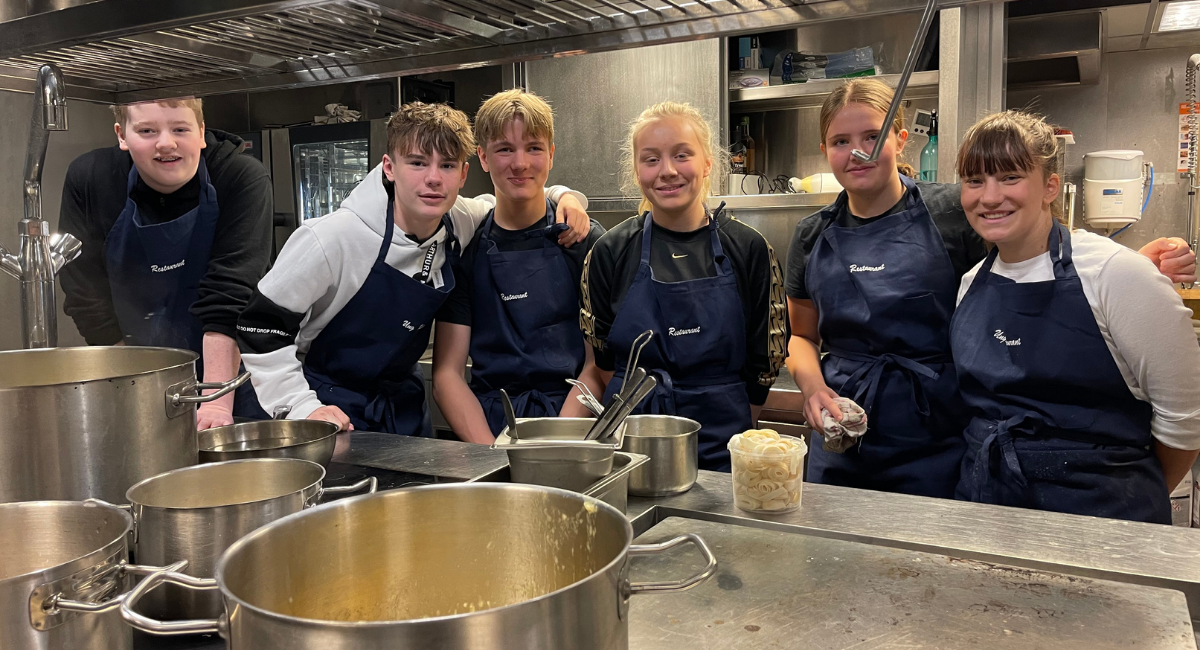 Det er en overskyet og rolig formiddag i Trondheim, men inne på Restaurant Fagn er viltre elever fra Spongdal Ungdomsskole i full gang med å preppe mat som skal serveres til foreldre, lærere, politikere og andre gjester. De har fått de samme råvarene som de andre ungdomsskolene og restaurantene har fått. Trøndersk krabbe i sesong, blåskjell fra Fosen, fersk torsk, byggryn, ekte trøndersk smør. Så skal de sammen med kjøkkensjefene skjære og kutte, koke og redusere, lage en treretters meny, dekke bord og servere når gjestene kommer klokken 15.